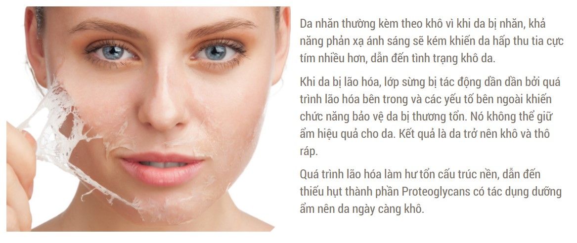 Lão hóa da là quá trình suy giảm các chức năng của làn da, tuần hoàn máu và hệ bạch huyết suy giảm, làm hủy hoại cấu trúc nền của da, làm suy yếu mao mạch dưới da, độc tố không đào thải được ra ngoài.