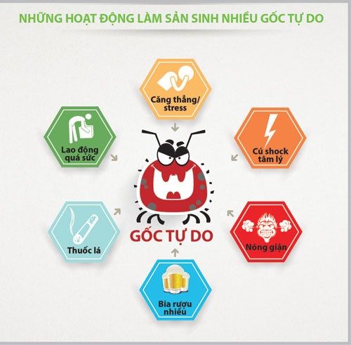 - Nhiều nghiên cứu đã chỉ ra gốc tự do được sinh ra liên tục trong quá trình chuyển hóa của cơ thể, đặc biệt là ở não, cộng với tác động của môi trường sống hiện đại chính là nguyên nhân chính gây đau đầu.